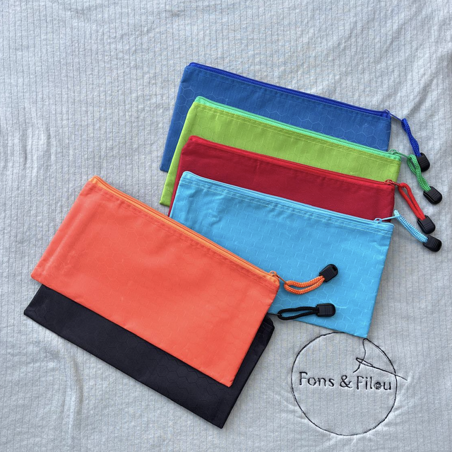 Plastic materiaal, deels waterdicht van binnen. Verschillende kleuren beschikbaar.