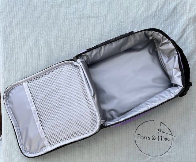 Zakje in jute met rood-oranje handvaten 26*22*13 cm