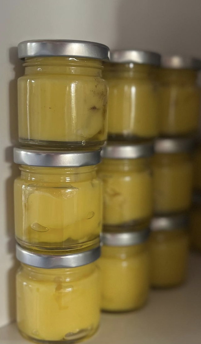 Onze zalven zijn gemaakt met natuurlijke materialen. De basis is olijfolie of zonnebloemolie en verse bloemen die we zelf plukten.